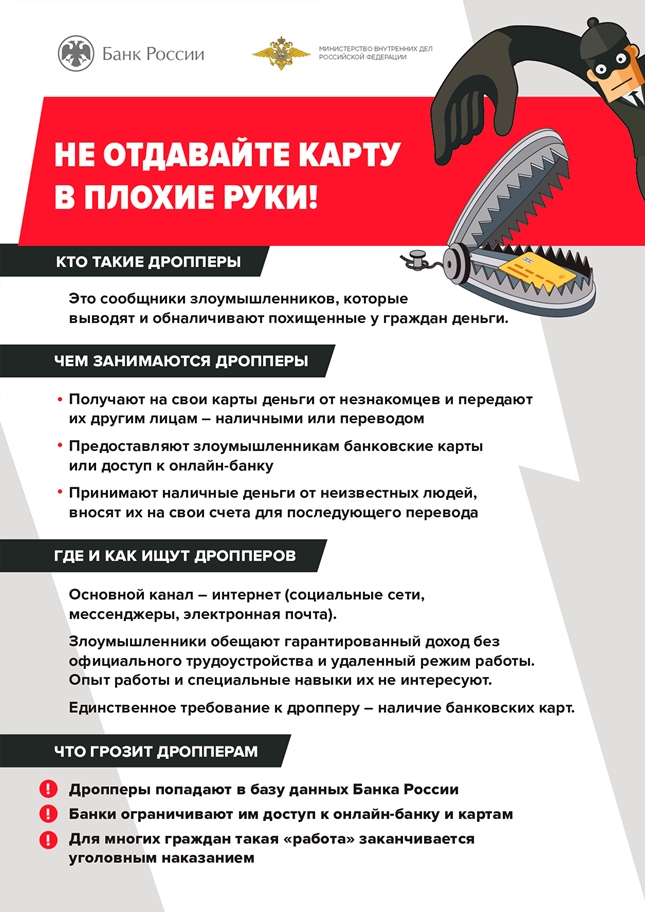 Полиция предупреждает! ДРОППЕРСТВО! Как мошенники обманывают своих жертв: